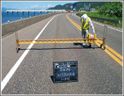 道路の舗装を施工した後の路面の縦断凹凸量を測定する試験です 。