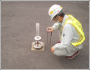 路面の排水性、透水性舗装の透水性を求めることを目的とした試験です。