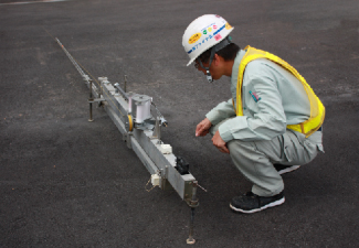 輪荷重によってアスファルト舗装及び路床・路盤路面に生ずるたわみ量を測定する試験です。